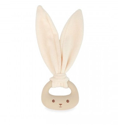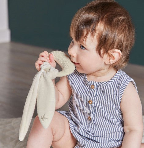 Questo simpatico anello da dentizione in silicone a forma di coniglio color crema è perfetto per dare sollievo alle gengive doloranti del neonato. Con 7 cm di altezza e 8 cm di larghezza, è perfettamente adatto alle piccole mani. La sua forma arrotondata e soffice è progettata appositamente per la bocca dei più piccoli. Pensato per il benessere del neonato, è composto da 2 materiali. La parte anteriore è completamente liscia, mentre il retro è dotato di puntini in rilievo che massaggiano le gengive e favoriscono la dentizione. Le orecchie, grandi e soffici, sono facili da afferrare e permettono di agganciarlo ovunque, per essere sempre a portata di mano. Inoltre, le orecchie sono removibili per facilitare il lavaggio. Lavabili in lavatrice a 30°C.