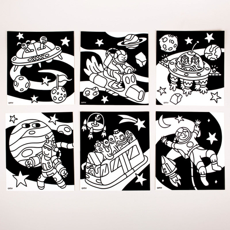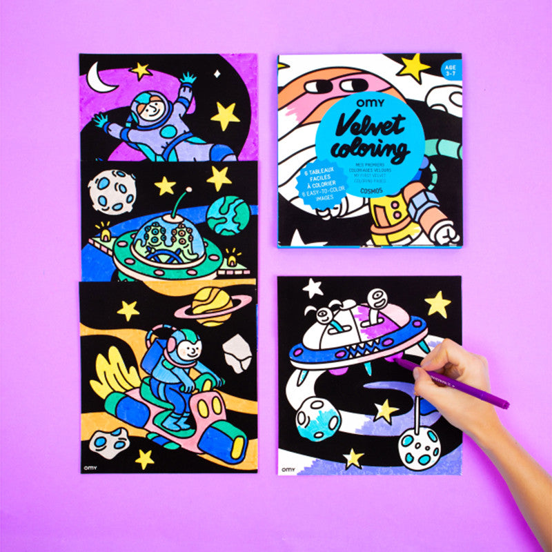 Direzione Luna per il viaggio più bello nello spazio. Vieni a scoprire l’universo Cosmos attraverso questi 6 pannelli in velluto da colorare! Facili e divertenti, i pannelli in velluto aiutano i più piccoli a colorare senza uscire dai bordi. Ideali per sviluppare la destrezza e la creatività.