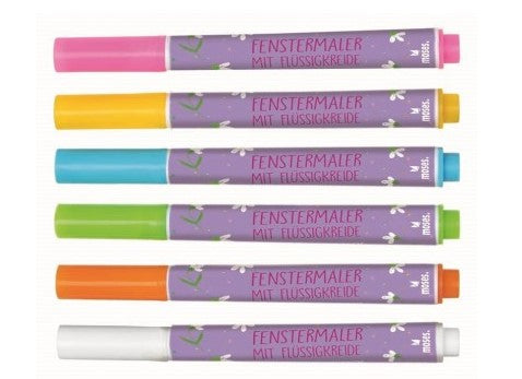 con i coloratissimi pennarelli a gesso in sei tonalità allegre, è possibile decorare con creatività tutte le superfici lisce. Le sagome incluse nel set – con fiori, farfalle e scritte – offrono ispirazione o possono essere semplicemente ricalcate. E se qualcosa va storto durante il disegno, nessun problema: i colori si cancellano facilmente con un panno umido. Il set per dipingere sui vetri è perfetto per decorare la casa in modo originale in occasione della Pasqua, dell’arrivo della primavera o semplicemente per portare un po’ di allegria nella quotidianità.