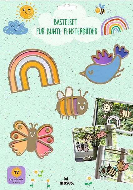 Con questo coloratissimo kit creativo è possibile realizzare 17 splendide decorazioni per finestre dai colori brillanti! Le sagome pre-fustellate in carta kraft e le pellicole colorate trasparenti si combinano facilmente, permettendo ai bambini di creare decorazioni fantasiose da appendere, trasformare in un mobile o usare come addobbi per le finestre.