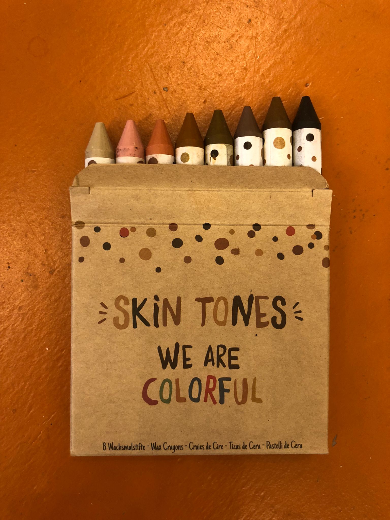Pastelli a cera sostenibili in 8 diverse tonalità di pelle, pensati per un’educazione alla diversità fin dalla prima infanzia.