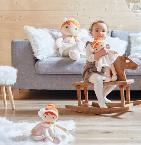 Scopri la ballerina classica 25 cm che farà sognare tutti gli appassionati di balletto! Con il suo maglioncino rosa chiaro, il foulard dorato e la morbidissima gonna decorata con stelle brillanti, lo stile Valentine è delicato e raffinato. La sua capigliatura rossa la rende inconfondibile nella linea Tendresse.