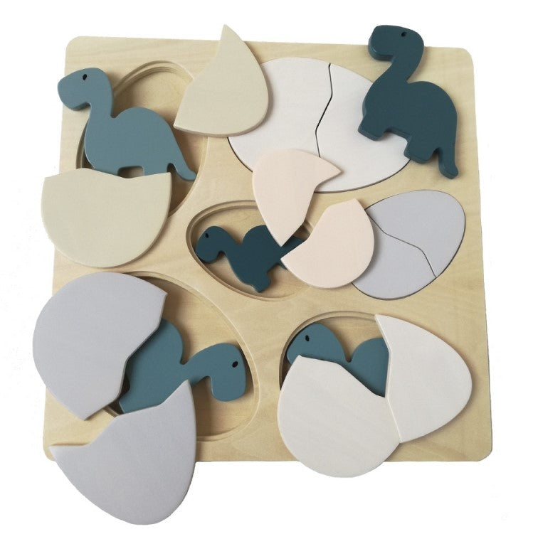 Chi si nasconde dentro queste grandi uova? 6 adorabili cuccioli di dinosauro. Abbi cura di rimetterli nell'uovo corrispondente e chiudi il guscio. Destrezza, precisione e buon ragionamento... Jack li adora! Legno.
