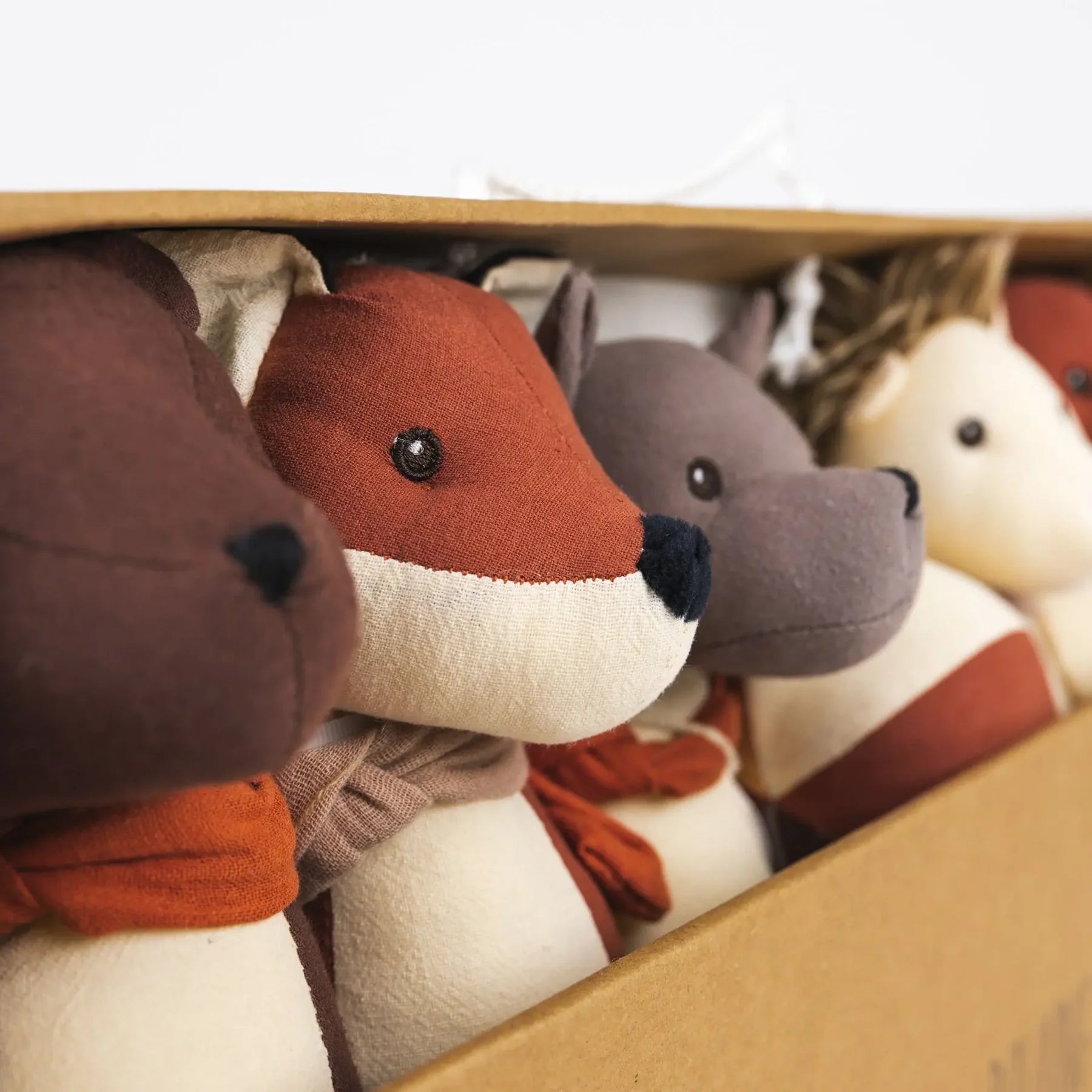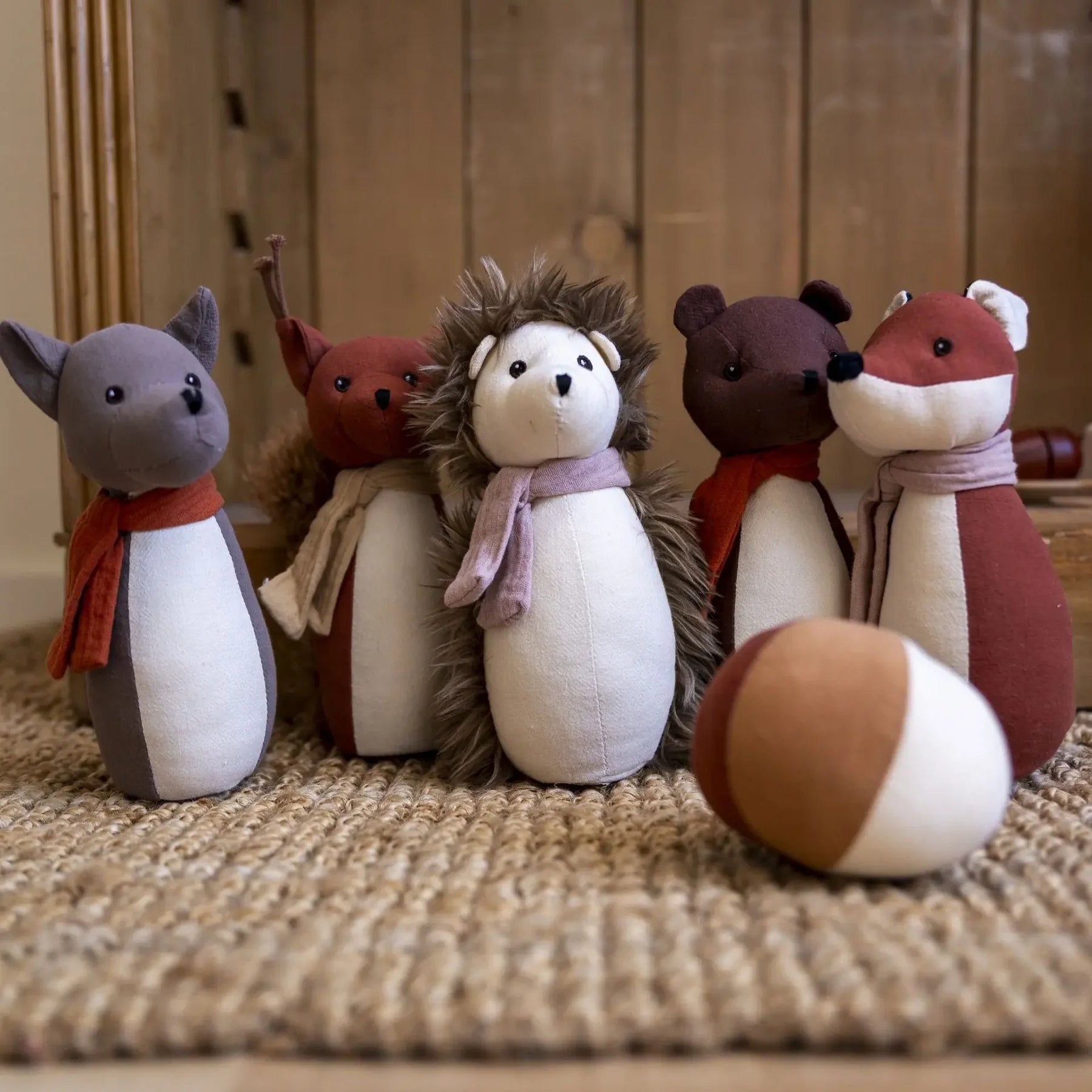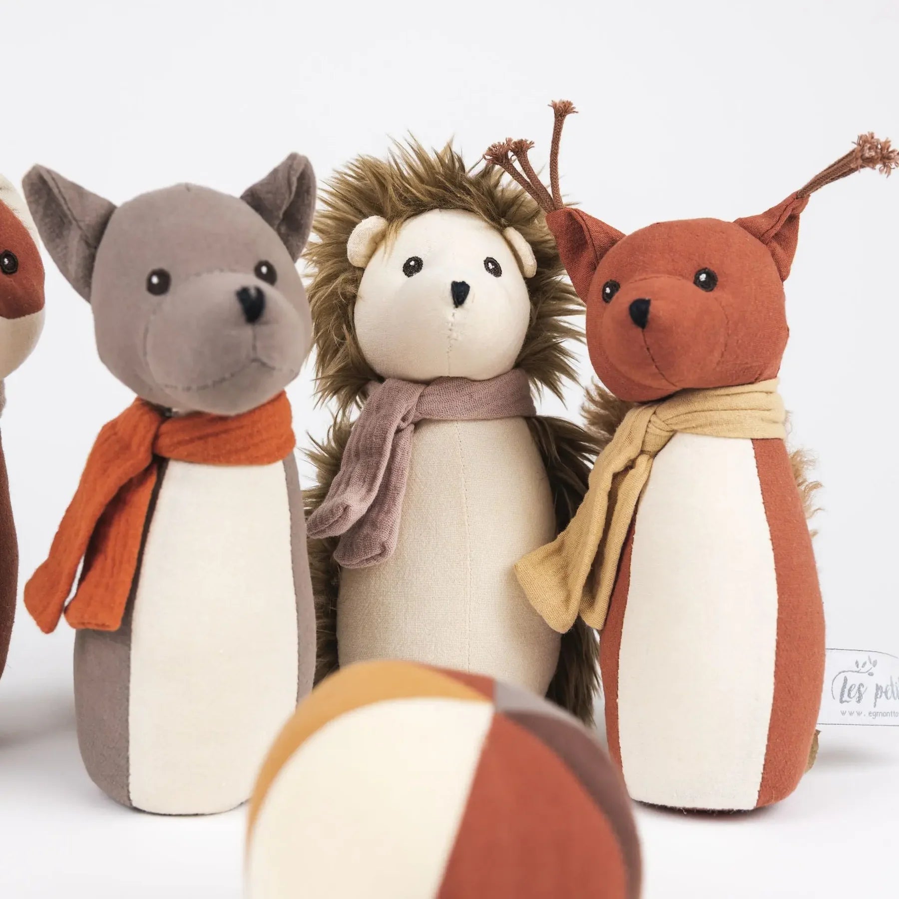 I più piccoli sviluppano la coordinazione occhio-mano giocando con questi deliziosi animaletti in cotone ricamato. Ogni birillo indossa una soffice sciarpina e ha un viso amichevole cucito a mano, per coccole che durano nel tempo.