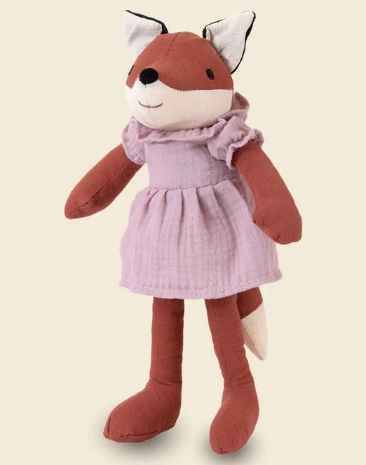Questa dolce volpe trasforma i momenti tranquilli in coccolose avventure. Il suo morbido corpo color terracotta e il musetto color crema la rendono perfetta per gli abbracci, mentre il vestitino lilla aggiunge un tocco di magia ai racconti dell’ora del tè.