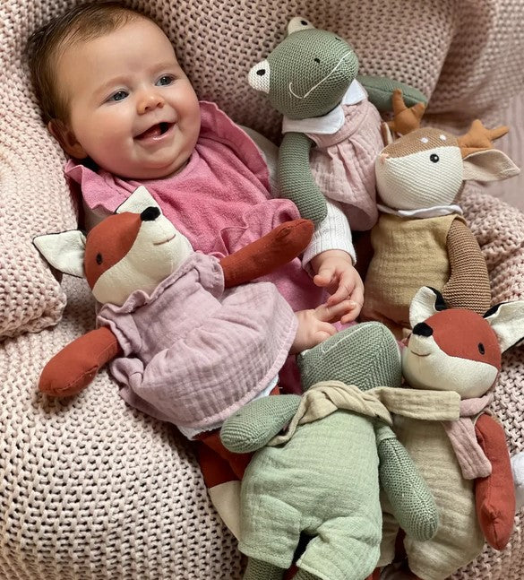 Le piccole mani sviluppano capacità di cura attraverso il gioco affettuoso. Realizzata in cotone morbido e comprimibile, con dettagli ricamati a mano, è pensata per resistere a anni di abbracci e storie fantasiose.