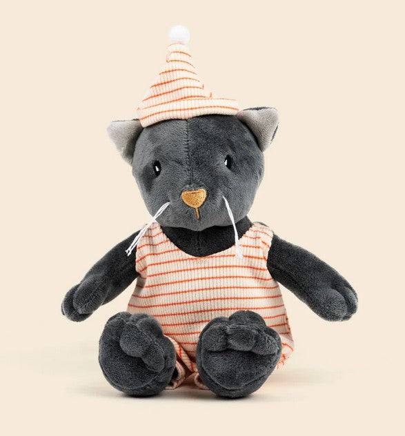 Questo soffice gattino grigio trasforma l’ora del tè in magiche avventure. Con il suo morbido maglioncino a righe e il cappellino con pon pon, è pronto per coccole e viaggi di fantasia in tutta la casa.