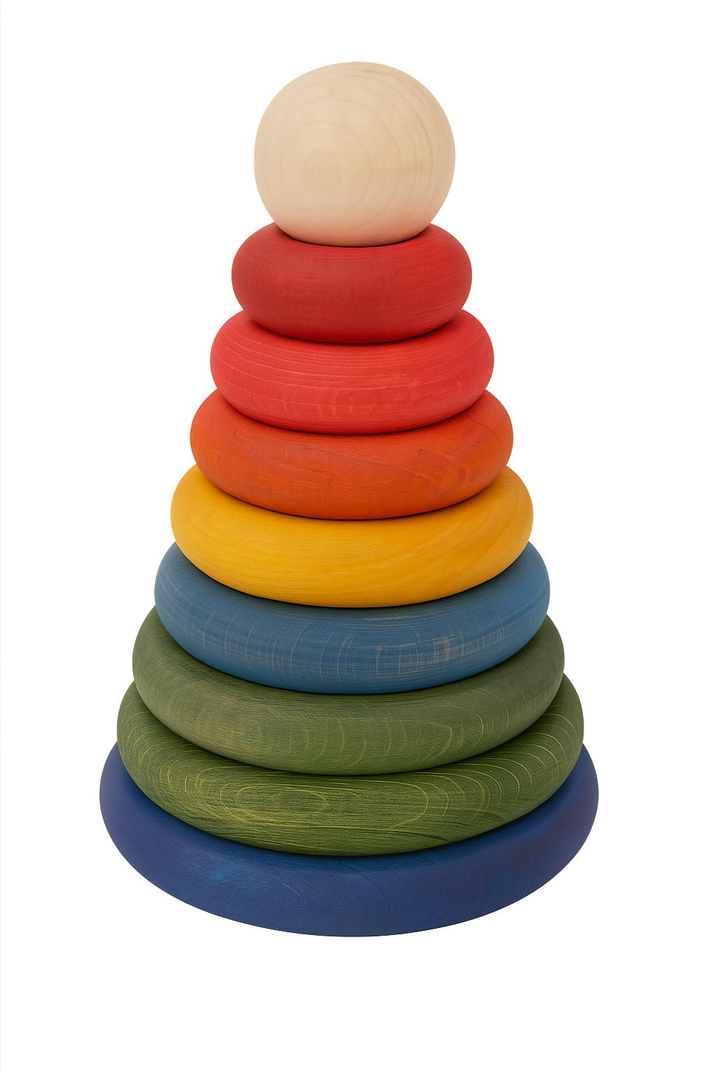 Giocattolo di legno. Dal più grande al più piccolo, dal più piccolo al più grande! O forse quello più piccolo nel mezzo? Tante possibilità! Perfettamente rotondi rotolano in giro... Mischiali, abbinali, combinali e gioca! Così morbidi grazie alla cera d'api e agli oli botanici, così sicuri – dalla natura!