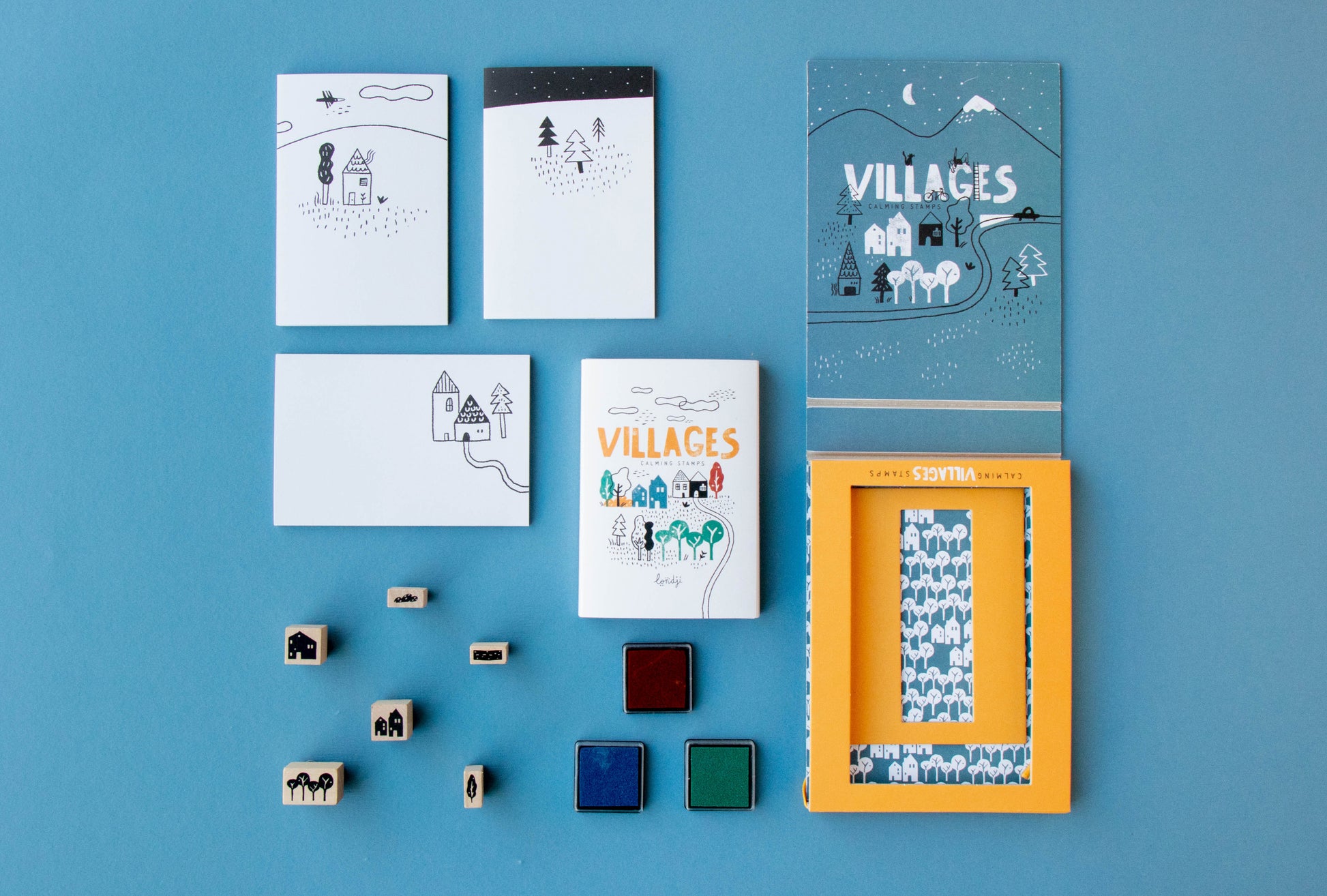Rilassati timbrando motivi ripetuti di alberi, case e sentieri e crea il tuo... paesaggio di sentieri! Il gioco include 6 timbri di legno, 9 fogli pieghevoli e inchiostri in 3 colori. Per bambini dai 5 anni in su.