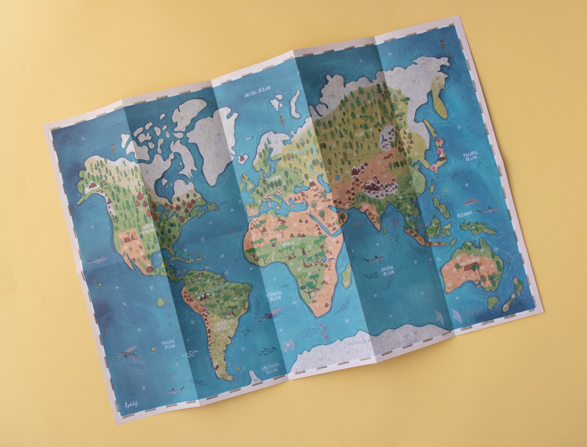 Un'attività con 165 adesivi di animali e un poster con mappa del mondo. Un gioco divertente ed educativo per imparare divertendosi!
