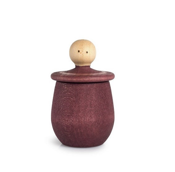 Scatola dei desideri rossa con una piccola figura all’interno.