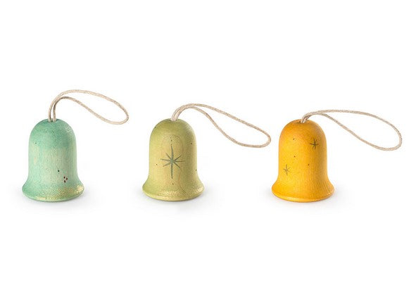 La Scatola Nº3 contiene 3 decorazioni a forma di campanella, dipinte a mano (con filo incluso per appenderle).