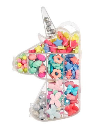 Kit di perline a forma di unicorno con perline in colori vivaci e fantasiosi.