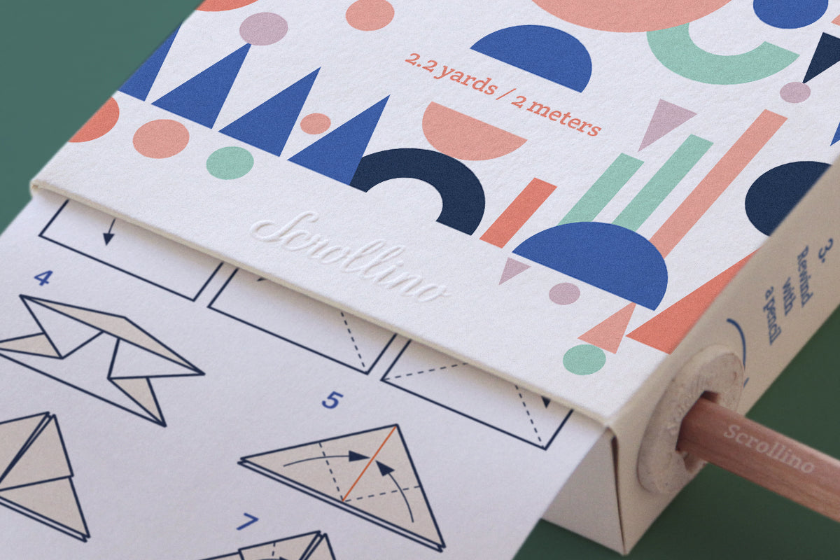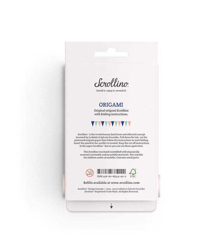Scrollino® offre oltre quasi 2 metri di carta origami fantasia con istruzioni per la piegatura.