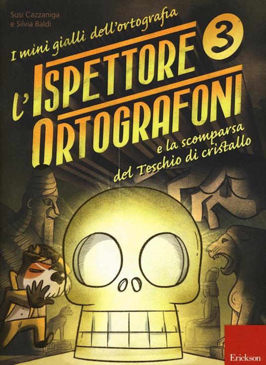 5 libri-gioco per esercitarsi con l'ortografia nella scuola primaria. Una serie che trasforma l'ortografia, spesso vissuta dai bambini come noiosa e frustrante, in un'occasione di apprendimento implicito e divertimento attivo. I 5 volumi hanno un livello di complessità crescente, per uno sviluppo progressivo delle competenze ortografiche e lessicali. In linea con il programma della primaria, ma svincolati da un criterio strettamente legato alla classe, possono essere utili anche in caso di specifiche difficoltà di apprendimento per il potenziamento e il recupero. Nella "Scomparsa del Teschio" di cristallo, risolvendo degli appassionanti giochi enigmistici, il bambino otterrà degli indizi che diventeranno prove schiaccianti per incastrare il colpevole! In questo terzo volume, il bambino si eserciterà in particolare su: parole contenenti digrammi e trigrammi (gn, gl, eh, gh, sc/sch); parole con raddoppiamenti semplici (consonante-consonante/a-o-u); parole con raddoppiamenti semplici seguiti dalle vocali i/e (cci/cce; ggi/gge), parole con raddoppiamenti multipli (cappello, cappotto, pennello).